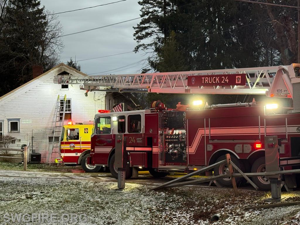 | Truck 24 responded to a reported house fire along Mount Pleasant Road in Hempfield Township, providing assistance to Hempfield Fire Department No. 2.